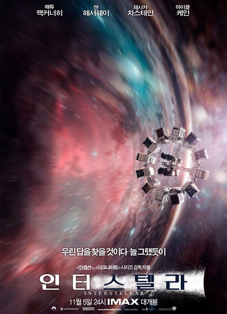 영화 인터스텔라는 SF장르를 지닌 2014년 11월 16일에 개봉한 영화이다. 2016년 1월 14일에 재개봉까지 한 영화이다. '크리스토퍼 놀란' 감독이 제작했으며 영화 인셉션, 다크나이트 등 많은 작품을 만들었다. 미국 아카데미 시상식에서 '시각효과상'과 영국 영국 아카데미 시상식에서 '특수시각효과상' 등을 받았다.